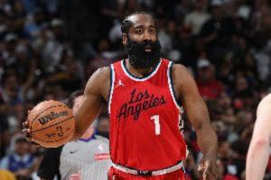 腿软兮兮!哈登赛季场均4.6板 今天的比赛一个篮板都没抢到