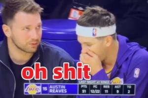 GIF-东契奇向里夫斯展示自己扭伤的手指