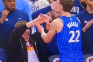技惊四座!赫夫虚晃后突破 直接单臂滑翔隔扣卡尔克布伦纳!