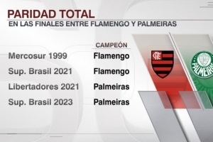 据ESPN统计,帕尔梅拉斯、弗拉门戈将第五次在决赛中相遇,此前两队各胜2场。